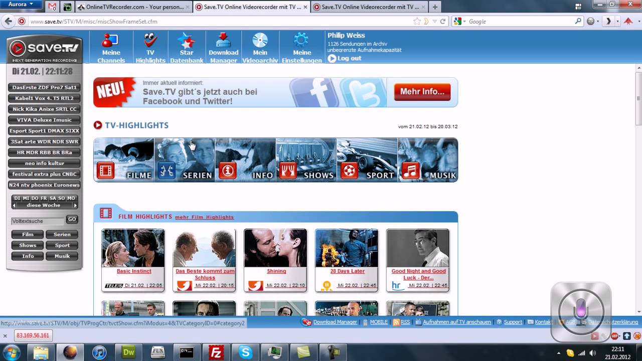 http://clicktotweet.com/3nCT2 Vergleich zwischen OTR und SaveTV, in diesem Part geht es um die Website am PC, Part 2 zeigt die Apps fürs iPhone. OnlineTVRecorder (OTR) ist ein Online Video Rekorder Dienst, den man sowohl kostenlos als auch als Premium Nutzer für max. 1€ pro Monat nutzen kann. Man kann von insgesamt 90 Sender rund um … Weiterlesen